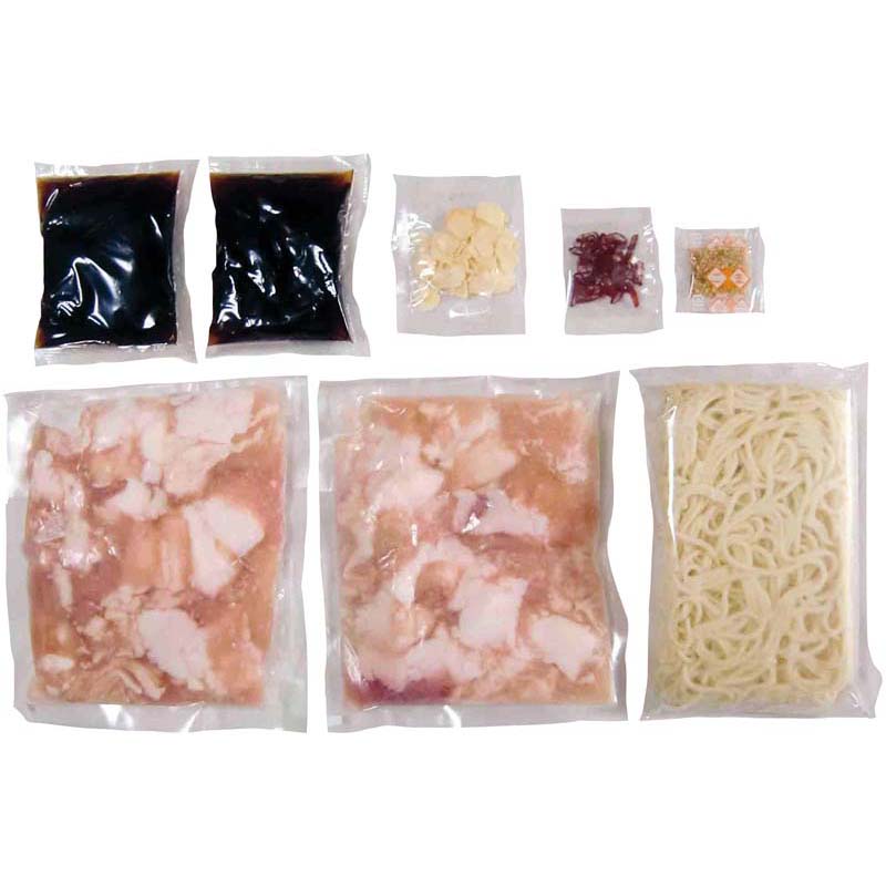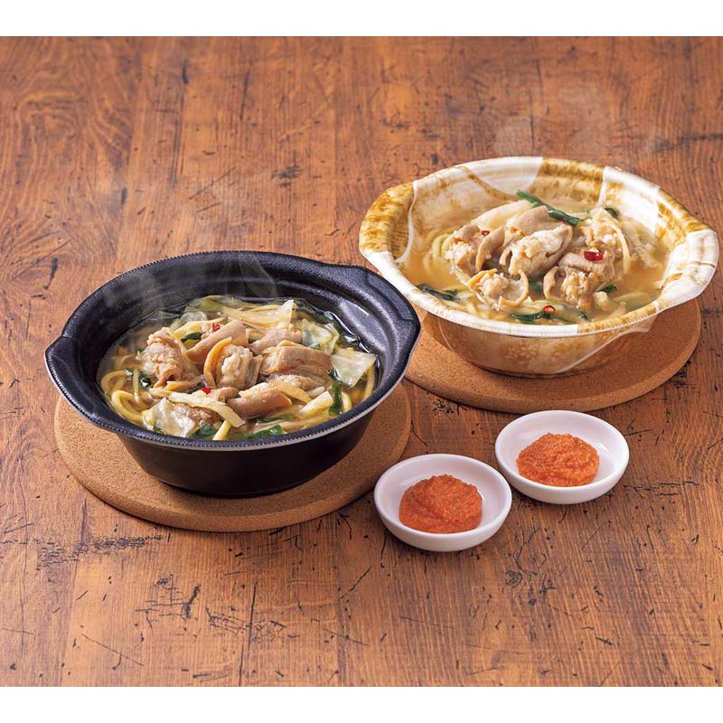 約2~3人前/牛もつ100g×2、ちゃんぽん麺180g、濃縮スープ85g×2、スライスにんにく3g、白ごま0.7g、唐辛子0.5g