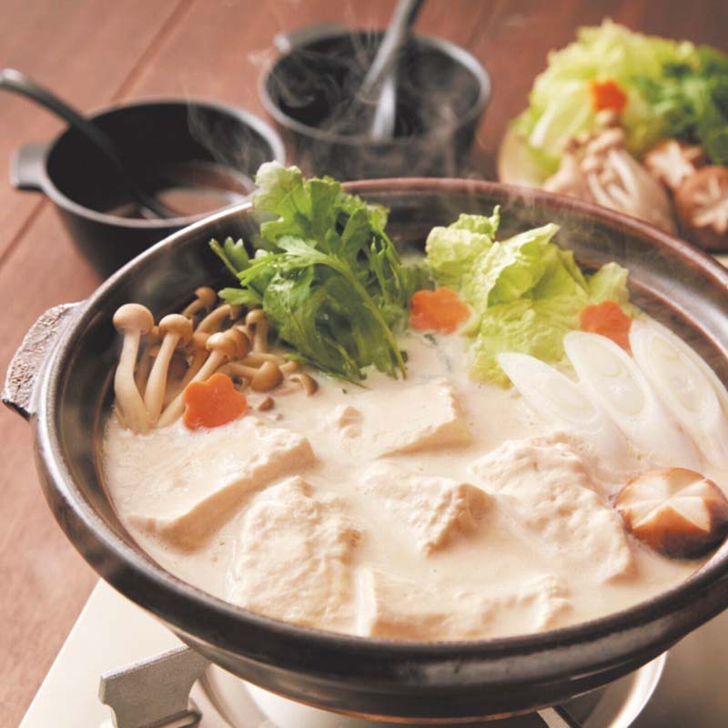 日本三大美肌の湯として知られる嬉野温泉の名物湯豆腐。調理水で湯豆腐にすると豆腐が溶け出し、やわやわと淡雪のような湯豆腐鍋になります。