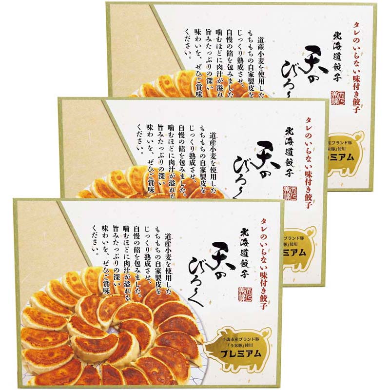 【簡単調理】北海道千歳市産のブランド豚(う米豚)と国産野菜で作った餡を、北海道産小麦(春よ恋)で作った餃子の皮で包みました。