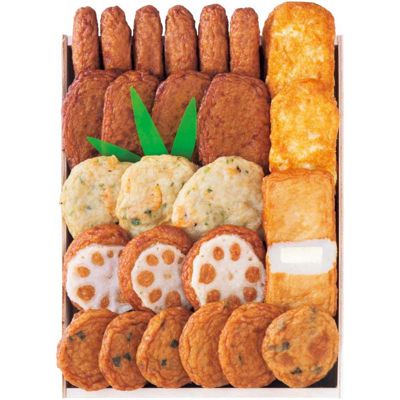 棒天6本、つけあげ天4枚、磯の香天・れんこん天各3枚、さつま芋天・チーズ天各2枚、野菜丸6枚