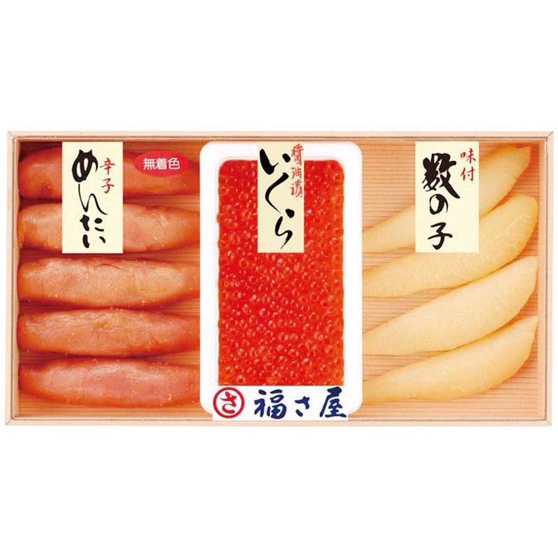 無着色辛子めんたいこ160g(ロシア又はアメリカ産)、味付数の子80g(アメリカ又はカナダ産)、醤油いくら60g(北海道産)(全て福岡県にて加工)