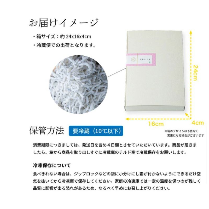 地元湯浅湾にて水揚げされたしらすを、海の香りと鮮度を逃さずふっくら柔らかく茹で上げました。紙箱入りとなっております。_