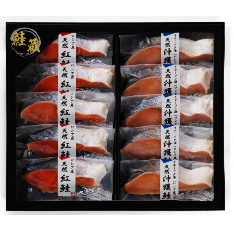 素材にこだわった紅鮭と時鮭を一切れずつ真空にしたおいしくて便利な逸品です。