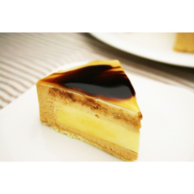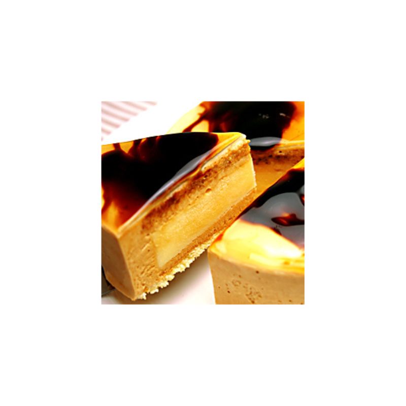 キャラメルムース、プリン、スポンジケーキ、カラメルソースの4層です。