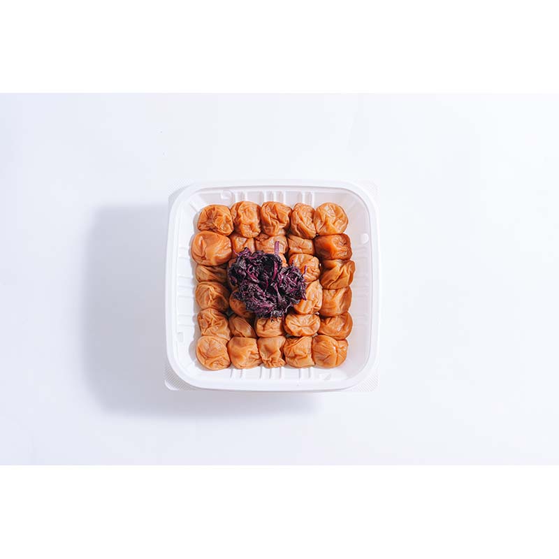 名称:調味梅干 原材料名:梅、しそ、漬け原材料[食塩、砂糖、還元水飴、発酵調味料、たん白加水分解物、はちみつ]/酒精、調味料(アミノ酸等)、酸味料、甘味料(ステビア)、V.B1、香料、(一部に大豆を含む)